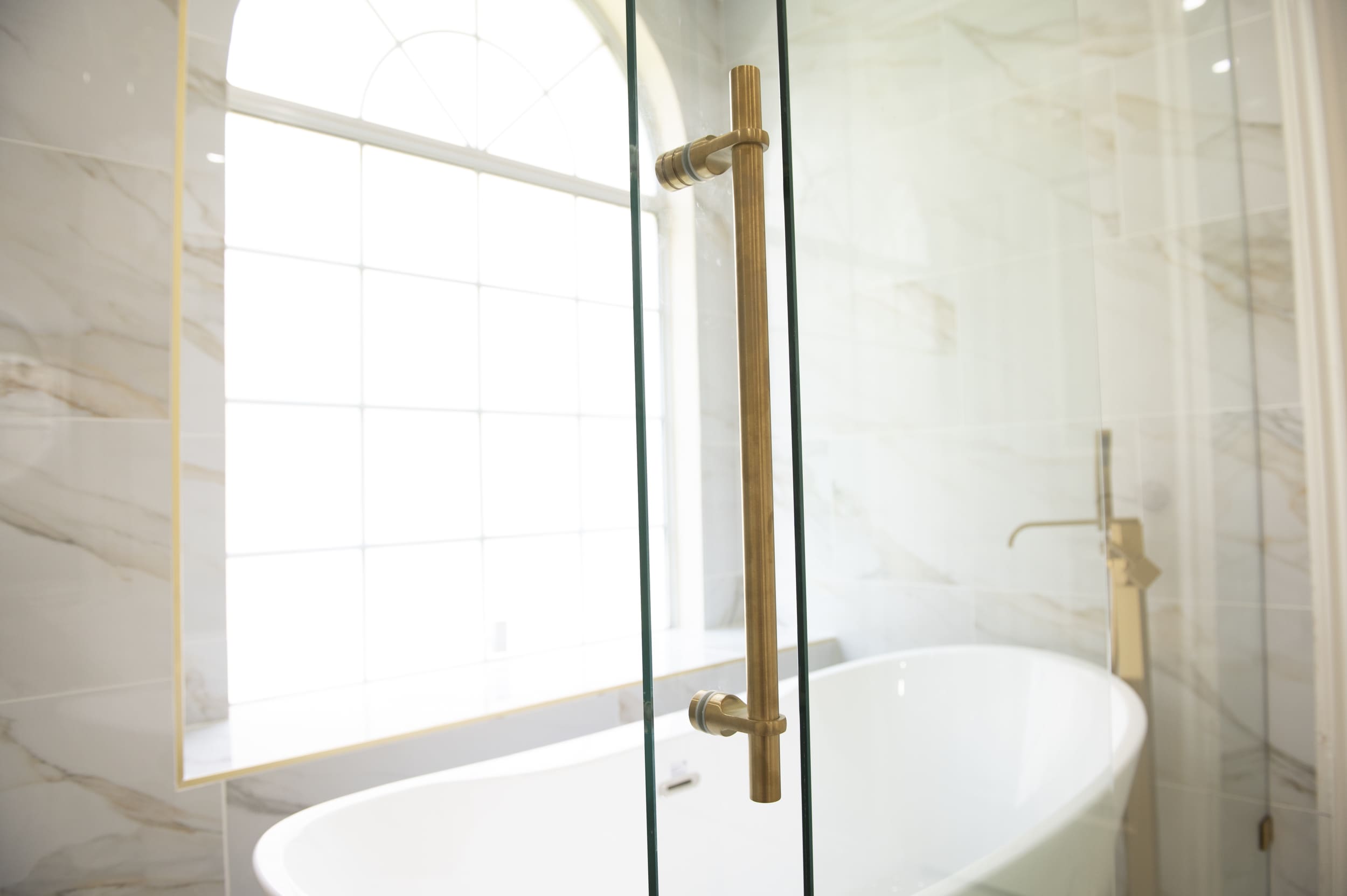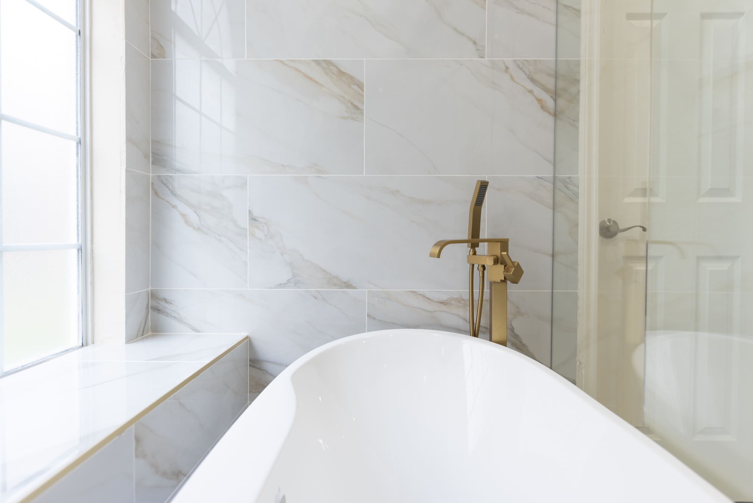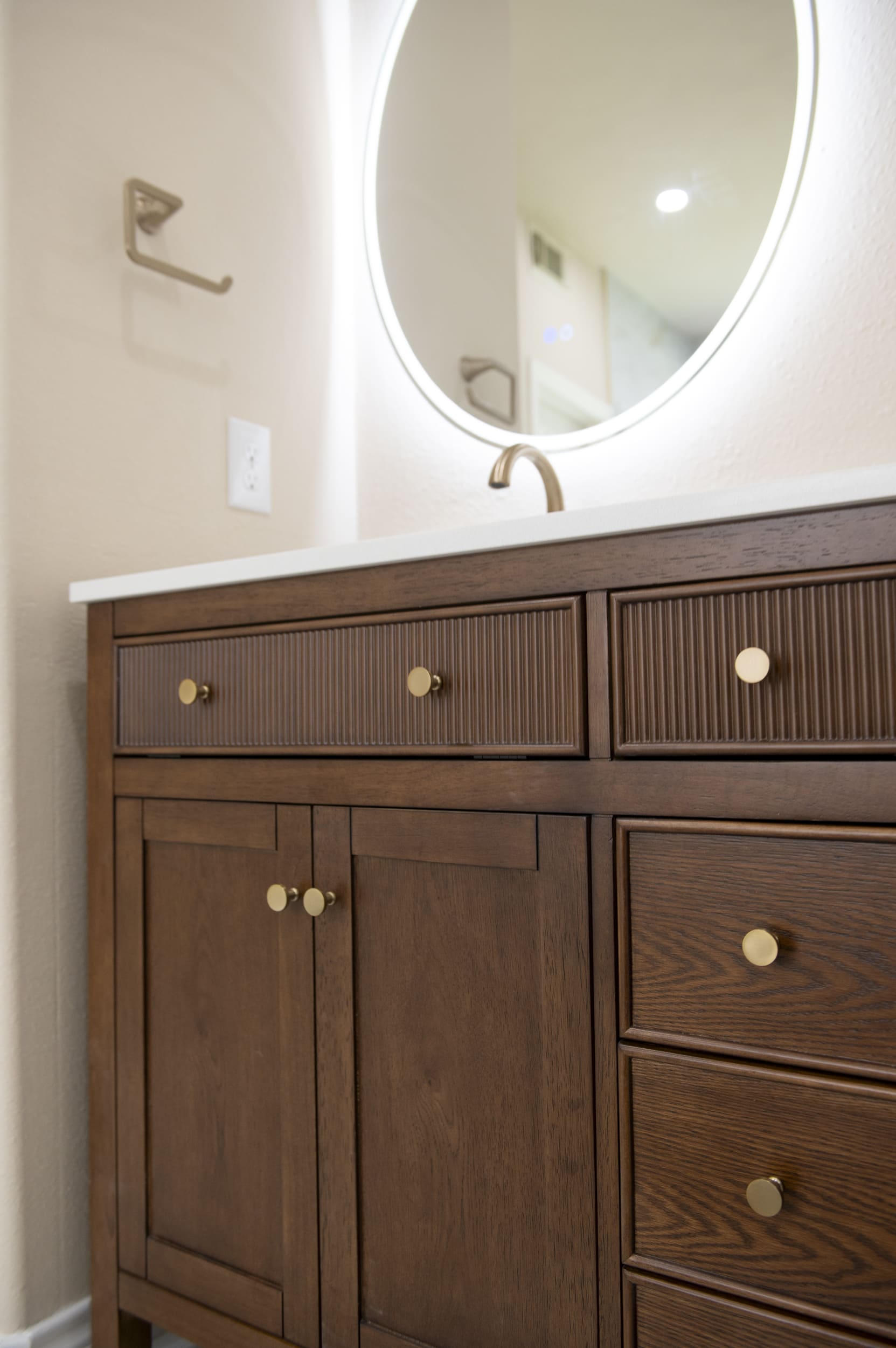 This Cypress bathroom renovation balances luxury with practicality—easy-clean surfaces, smart storage, and quality fixtures that last.